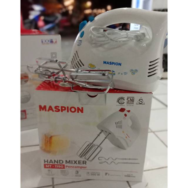 Harga maspion mt1190 hand mixer jual maspion mt 1190 hand mixer terjamin asli murah cicilan 0 dan gratis kirim hanya di jualelektronik com. Cari produk mixer lainnya di tokopedia. 5 kecepatan turbo warna. 5 kecepatan portable beater dan kneader terbuat dari stainless steel mudah digunakan dan dibersihkan spesifikasi nama produk maspion hand mixer tipe.