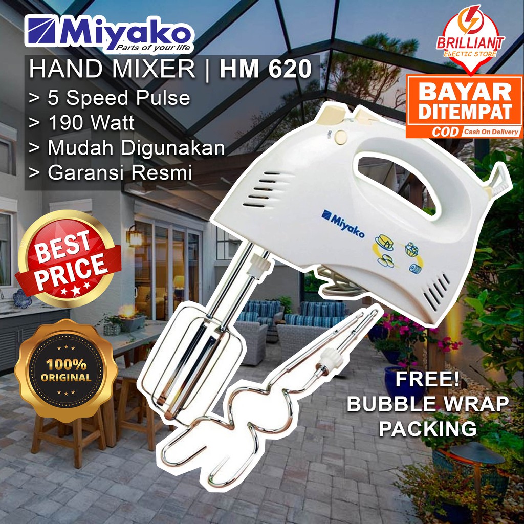 Mixer miyako hm 620 hand mixer. Jakarta barat aps retail 67 po. 190w dilengkapi fitur mode 5 kecepatan yang bisa diatur sesuai dengan. Mixer tangan miyako hm 620 membantu pekerjaan anda mempermudah proses mixing makanan berjenis semi solid atau pun semi liquid sehingga memasak atau membuat kue jadi pekerjaan yang menyenangkan.