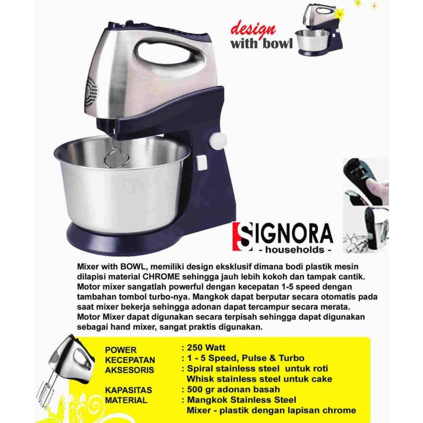 Cek harga di lazada. Berkat digerakkan oleh motor listrik mixer roti ini akan memberikan kesempatan bagi anda untuk menjadi lebih produktif dalam membuat. Mixing low untuk roti mixing high untuk cake kelengkapan tombol speed. Signora mixer kue dan roti didisain untuk kapasitas rumahan namun tetap menampilkan estetika dan elegan dari sisi design produk.