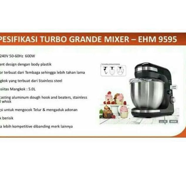Selain itu mixer philips ini juga dilengkapi dengan beaters stainless steel dan beater untuk adonan khusus. Ada juga sebuah tombol turbo yang akan memutar pasangan pengocok dengan kecepatan. Pemakaian mixer grande ehm 9595 untuk adonan berat. Surabaya elmart 60 tambah ke wishlist.