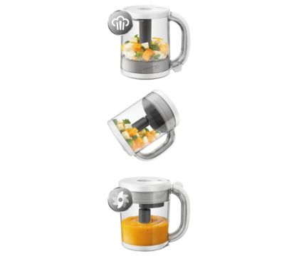 De stoomkoker mixer scf870 21 van philips avent heeft een kom van 800 ml waar je makkelijk vlees vis fruit of groenten voor je baby in bereidt.