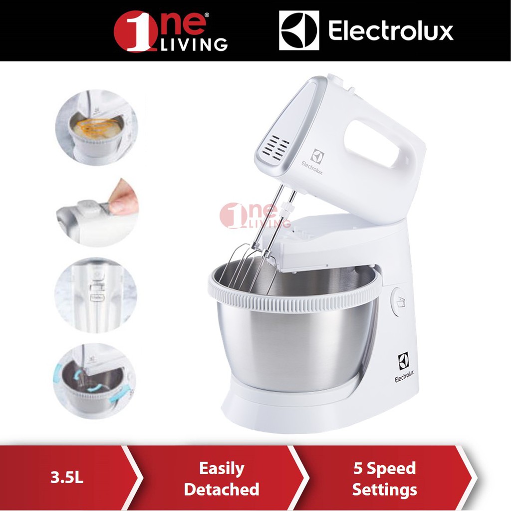 Review mixer electrolux ehsm 3417. The electrolux stand and hand mixer ehsm3417 is a 3 5l made with stainless steel rotating bowl perfect for easy and efficient mixing. For all those freshly beginning baking enthusiasts the electrolux stand mixer ehsm3417 provides you with an easy to approach appliance. Not to mention the 5 levels of adjustable speed leave you with no worries to keep this mixer under control. Reliable with speed and power control you can simply whip up baked goods without any mess or effort.